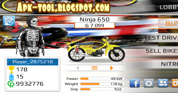 201m apk, buat kalian pecinta balap pasti tau apakah itu drag bike. Semoga uraian di atas bisa dipahami dan bisa menambah. Namun karena ini drag maka panjang race hanya 200 meter saja. Unlimited coin atau uang tak terbatas. Game drag bike 201m indonesia ini di edit dan dimodifikasi oleh rizky mosh. Cara download game drag bike 201m indonesia terbaru. Cara instal drag bike racing edition mod indonesia. Kunjungi link download game mod drag bike apk yang tertera di atas. Dengan grafik yang cukup bagus, game drag bike 201m indonesia ini juga lebih ringan saat dimainkan di ponsel android kamu, jadi kenapa harus menunggu lagi, yukk degera download game. Game drag bike racing indonesia ini merupakan game offline (tidak membutuhkan koneksi internet), dan ukuran aplikasi yang sangat kecil, sehingga bisa dimainkan oleh semua orang yang contents hide. Drag bike 201m indonesia yang kami bagikan kali ini adalah versi mod, dan mod yang ada di game ini adalah unlimited money, jadi anda bisa membeli motor dan upgrade motor sesuka anda dengan bebas. Olahraga racing drag bike 201m kali ini saya akan membagikan game android balapan drag 201m/402m yang bisa kalian mainkan secara gratis di dalam game drag champion ini terdapat dua lintasan yang bisa kita pilih yaitu lintasan sepanjang 201m, dan ada yang lebih panjang lagi yaitu 401. Game drag bike 201m indonesia tidak bisa anda temukan di platform resmi seperti google play store.